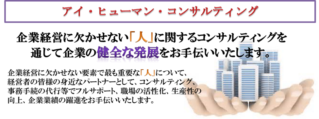 | 社 名 | 社会保険労務士事務所 アイ・ヒューマン・コンサルティング I・HUMAN・CONSULTING |